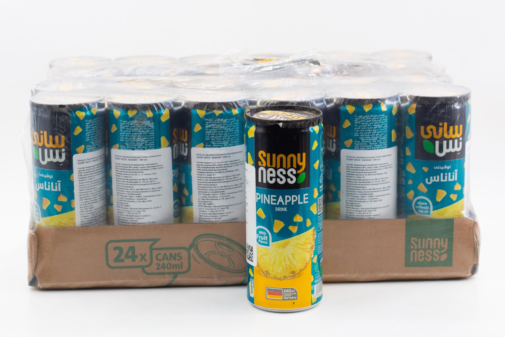 Напиток безалкогольный сокосодержащий Sunny Ness Ананас (Иран) 240мл ж/б0,00 руб. за штуку (в упак. 24 шт.) |