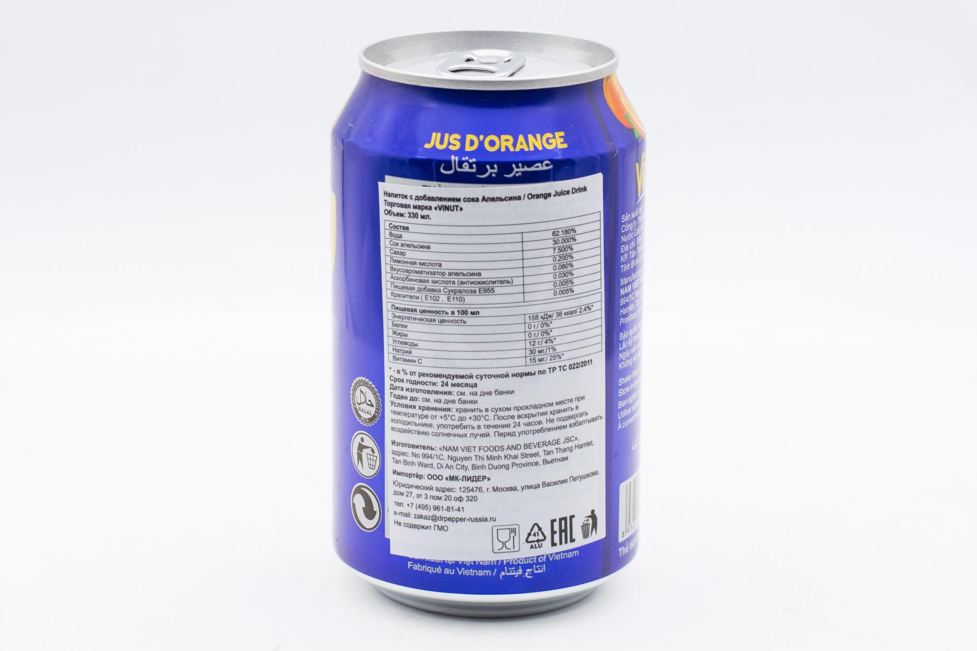 Напиток сокосодержащий Vinut с соком апельсина 330мл49,99 руб. за штуку (в упак. 24 шт.) |